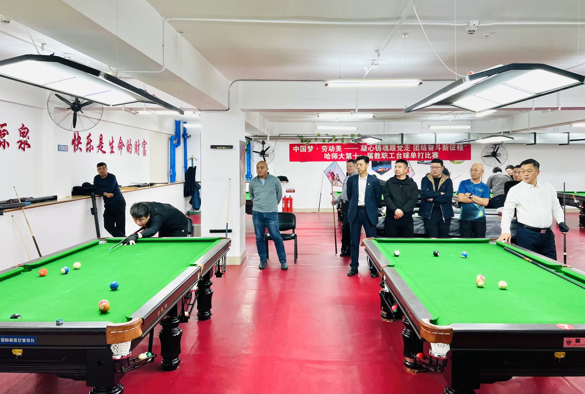 本次比赛的开展,不仅展现了台球爱好者们的高超球技,更为我校广大台球爱好者提供了切磋球技、彼此交流的平台,展现了我校教职工积极向上,奋勇争先的风采。校工会将继续深入贯彻落实党的二十大精神和习近平总书记关于加快推进体育强国建设的重要论述,“广泛开展全民健身活动”,强化教职工的思想政治引领,用丰富的职工文体活动,促进教职工间的沟通和交流,团结引领广大教职工以更加饱满的工作热情投身到我校“国内一流师范大学”建设,助力学校高质量发展。