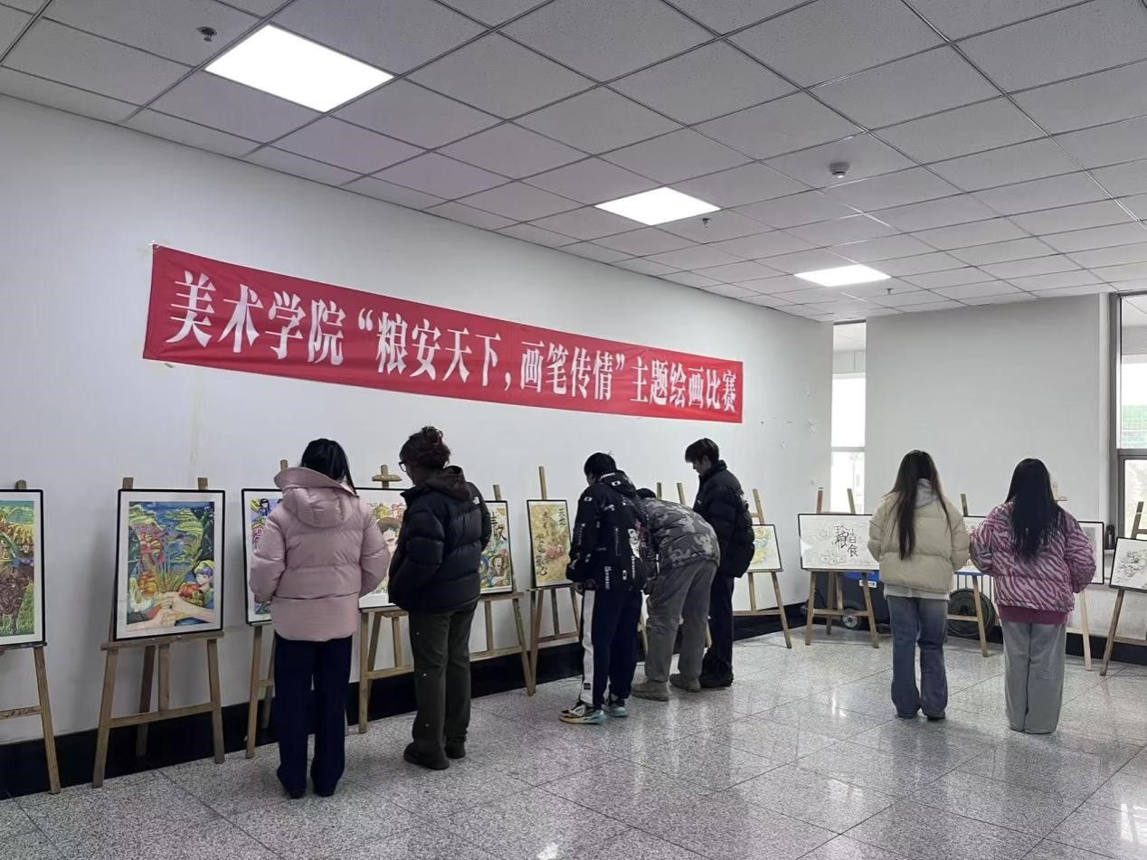 活动期间,学院通过多种渠道广泛宣传,共上交100多幅作品,展示出30多幅作品。同学们围绕粮食安全主题展开创作,作品题材丰富,风格多样,既有对传统农耕文化的表达,也有对现代农业技术的思考,展现了粮食安全的重要性。