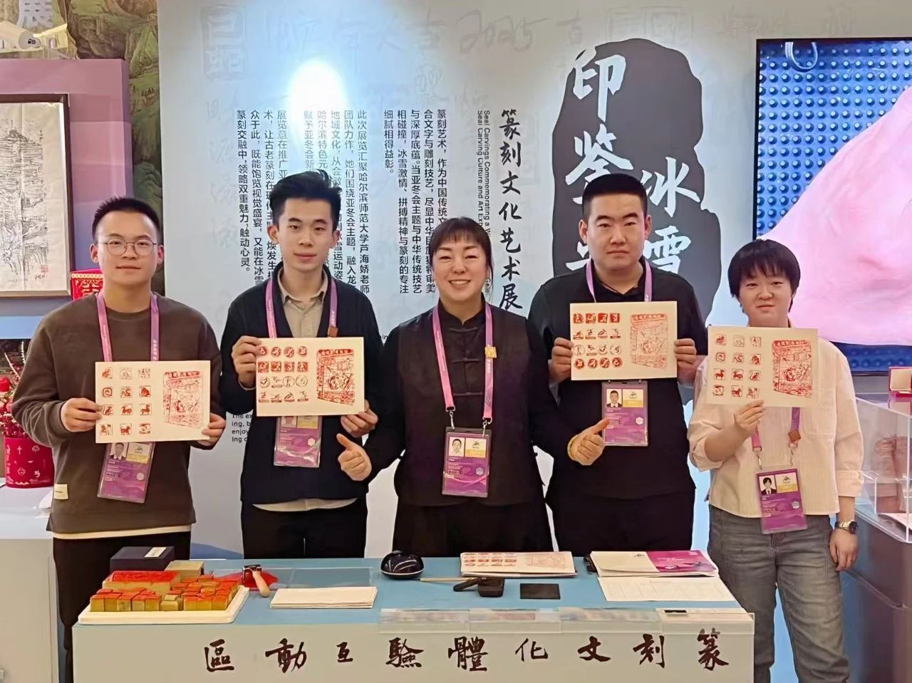 与此同时,芦海娇还带领美术学院青年教师闫永全,书法学专业研究生裴沫涵、曾嘉,本科生盛如意一起创作了篆刻文化体验互动打卡系列作品,着力让每一位来宾尽情享受这场彰显亚洲风采、中国气派、龙江特色、冰城魅力,铭刻“冰雪同梦、亚洲同心”文化符号的体育盛会。