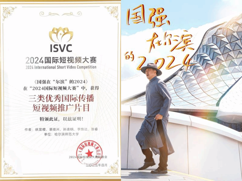 4月11日,由国家广播电视总局国际合作司、网络视听节目管理司指导,山东省广播电视局、泰安市人民政府主办的2024国际短视频大赛在泰安举行。我校传媒学院师生团队作品《国强在尔滨的2024》在全球60多个国家和地区的4452部海内外参赛作品中脱颖而出,荣获“三类优秀国际传播短视频推广篇目”奖。