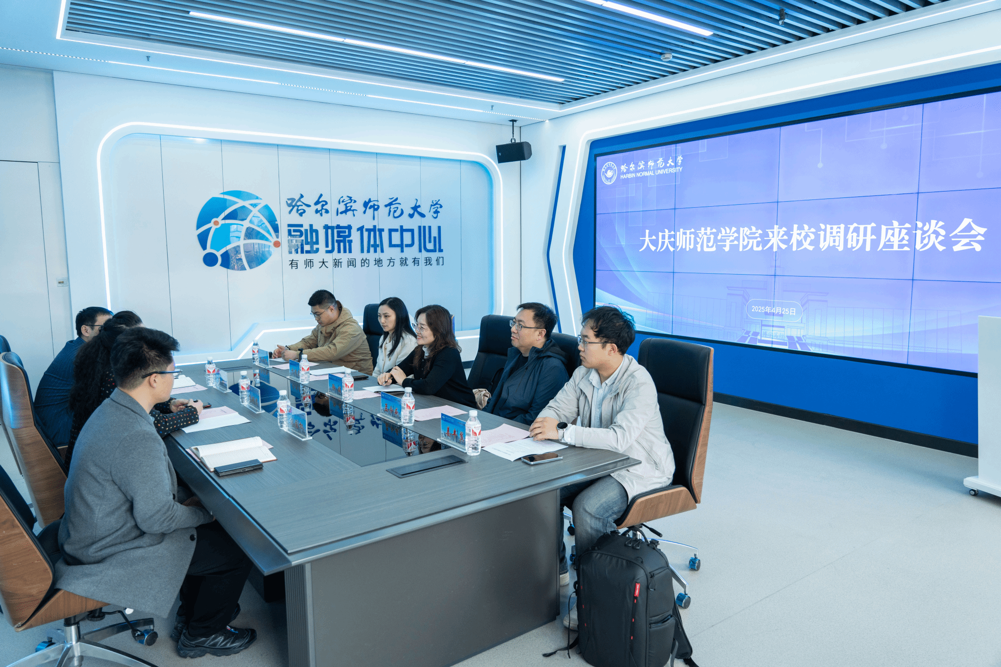 4月25日,大庆师范学院宣传统战部部长徐媛一行5人来校调研融媒体中心建设与运营工作。我校党委常委、宣传部(党委教师工作部)部长张艳君及相关负责同志参加座谈会,双方就新时代高校宣传思想工作创新开展深入交流。