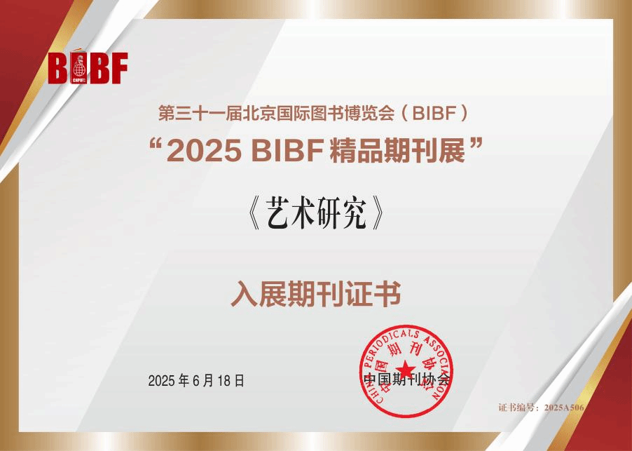 作为本届图博会“精品出版物展”的重要组成部分,“2025 BIBF精品期刊展”分设“‘十四五’规划中国期刊精品回顾展”“中国科技期刊卓越行动计划二期入选期刊”“首届中国期刊封面设计精品展”和“纪念中国人民抗日战争暨世界反法西斯战争胜利80周年珍本期刊展”4个主题。《艺术研究》荣获2025BIBF精品期刊展入展期刊。