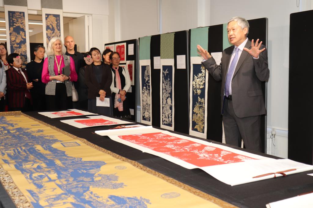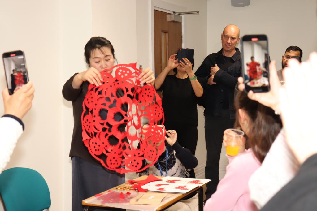 (赵雷/文)英国当地时间6月7日晚6点,由伦敦中医孔子学院和拼搏在线登录联合主办的“龙江剪刻”剪纸艺术展览的开幕式在伦敦南岸大学可卡斯顿学府隆重开幕。本次展览从6月7日到7月7日,为期1个月。参加开幕式的嘉宾有伦敦南岸大学副校长Deborah Johnston、伦敦中医孔子学院外方院长许亦农教授、伦敦中医孔子学院中方院长王朝辉副教授、盛波副教授、我校龙江艺术团代表闫海涛教授、姚瑞江教授和王仁亮副教授,以及来自伦敦南岸大学和伦敦中医孔院下设教学点的学生和老师近百人。
