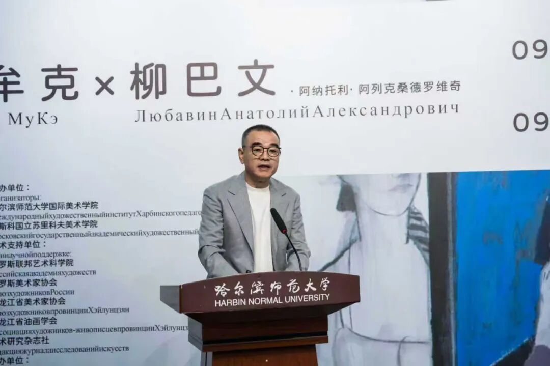 我校国际美术学院院长牟克在致辞中表示,本次联合作品展的主题表现了自然与人类的共生、文化与艺术的交融、情感与精神的共鸣,注入了哲学思想中追求的精神与生命的思考。旨在为夯实中俄美术联盟发展根基,推动国际艺术交流、培养高素质艺术人才,传承和创新艺术文化蓬勃发展贡献力量。