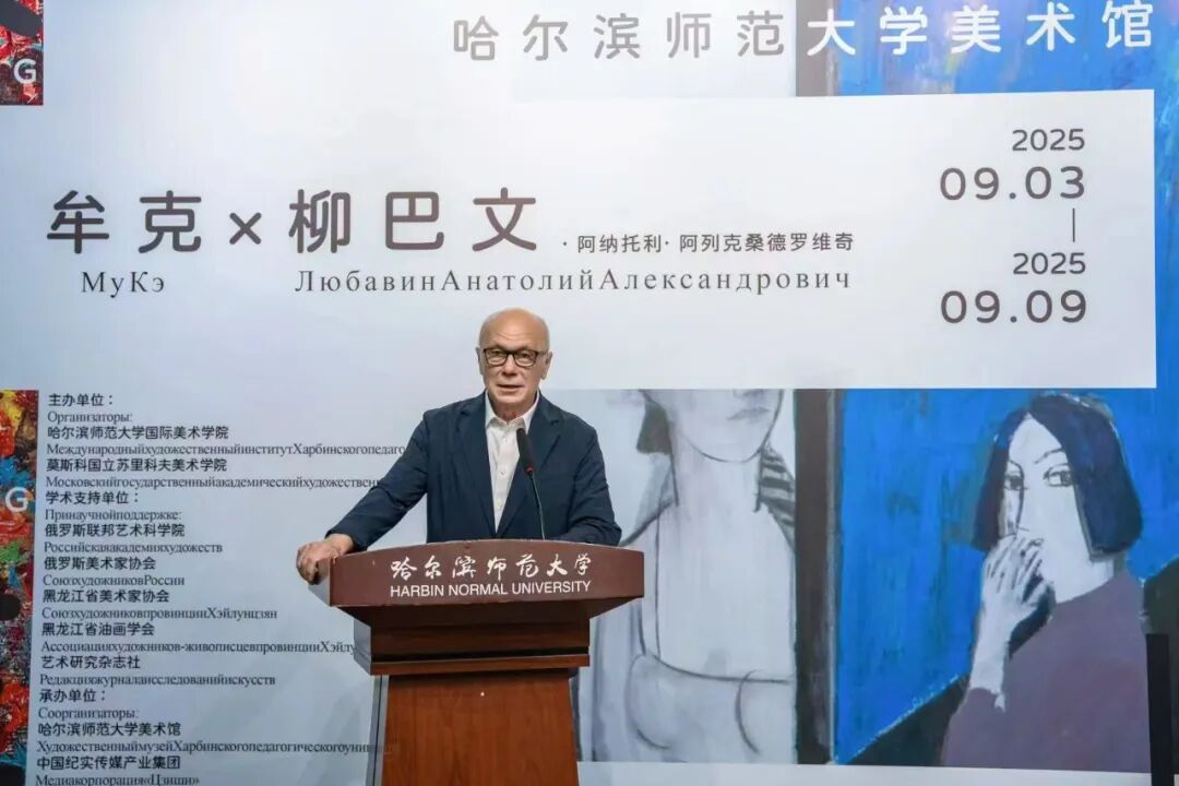 俄罗斯莫斯科国立苏里科夫美术学院院长、俄罗斯艺术科学院院士柳巴文・阿纳托利・亚历山德罗维奇在致辞中表示,此次联合作品展展示了两国文化底蕴与艺术魅力,搭建起了友谊与艺术交流的桥梁。希望通过此次作品展,进一步促进文化交流、增进民间友谊,吸引更多的艺术家参与其中,相互学习借鉴,为两国艺术发展注入活力。