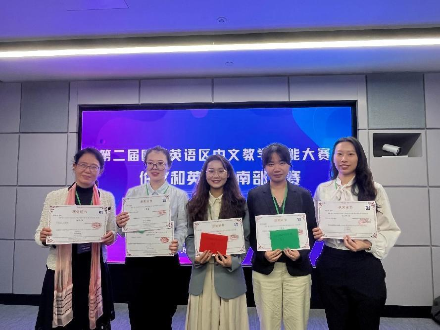最终,经过评委评议,伦敦中医孔子学院的老师们凭借超强的教学实力满载而归,包揽了比赛的一、二等奖。容永老师获得一等奖,张晓雯和张雨璇老师获得二等奖,李树娟老师获得教学创意奖,张晓雯老师获得最佳人气奖。容永、张晓雯和张雨璇三位老师将代表伦敦和南部地区参加英国区汉语教学技能大赛总决赛。