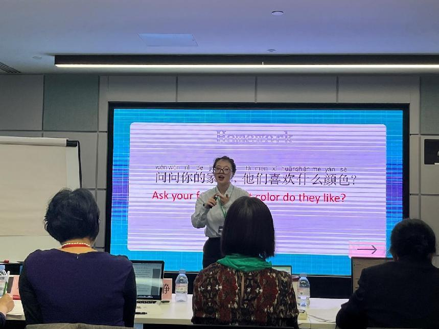 13号容永老师是最后一名参赛选手。容老师设计了很多有趣味性极强的游戏环节和真实的生活对话情景并重点练习了大量关于运动的词汇和句型。她利用丰富的数字化教学手段,成功吸引了学生们的注意力,从而提高了课堂的教学效果。容老师的教态十分自信和从容,感染力极强,展现了作为一名国际中文教师潮气蓬勃的精神面貌,给现场评委和观众留下了深刻印象。