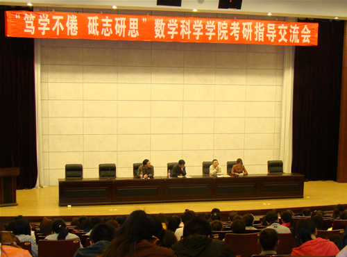 为提高广大学生对考研的认识、增强考研信心,数学科学学院于5月11日在科学会堂召开了考研指导交流会。