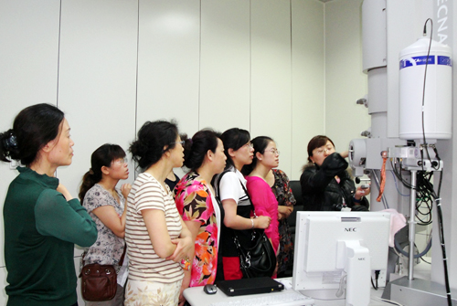 学院的教师分两组进入实验室,参观了透射电子显微镜、X射线衍射仪、激光分子束外延、电子束蒸发、微区拉曼光谱仪和霍尔效应测试仪等大型科研仪器。在参观的过程中,负责实验的研究人员热情地为教师讲解了仪器的工作原理和应用领域。研讨过程中,学院副院长高红向教师介绍了重点实验室的研究方向和最新工作进展,并结合其教学内容进行相关探讨。