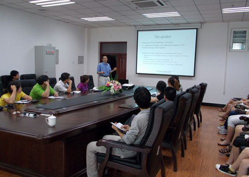 6月26日至29日,应物理与电子工程学院邀请,美国FEI公司透射电子显微镜(TEM)团队总监、著名TEM应用专家汤栋博士和香港中文大学物理系李泉教授来我校光电带隙材料省部共建教育部重点实验室讲学,重点实验室负责透射电子显微镜实验仪器操作的教师、研究生和其他院系相关研究方向的教师及学生听取了讲座,讲座由物理与电子工程学院院长张喜田教授主持。