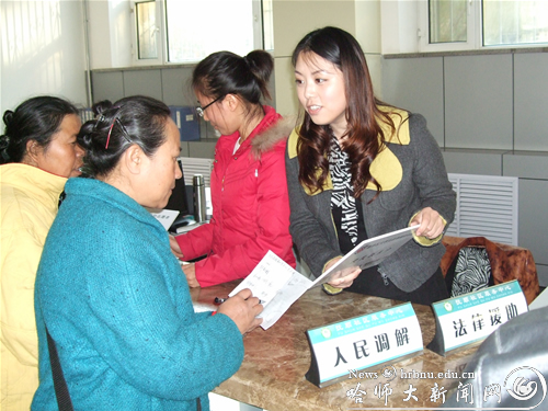 在仪式上,道里区法律援助中心为政法学院大学生法律援助者授予了“大学生法律援助志愿者服务队”的旗帜。政法学院将道里区法律援助中心确定为实践教学基地。苗正达在讲话中表达了双方要精诚合作达到共赢的决心。仪式结束后,政法学院十八名学生随即深入社区为居民提供法律咨询。