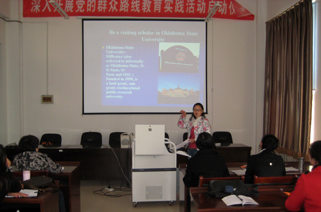 根据《公共英语教研部鼓励教师进修及从事科研工作的相关规定》,不断为教师提供学术交流的平台,10月16日下午,公共英语教研部国外访问学者王小卉在西语楼109会议室进行了学术报告,参加人包括公共英语教研部领导班子成员、部分教师以及在读研究生。报告由公共英语教研部副主任才亚楠主持。