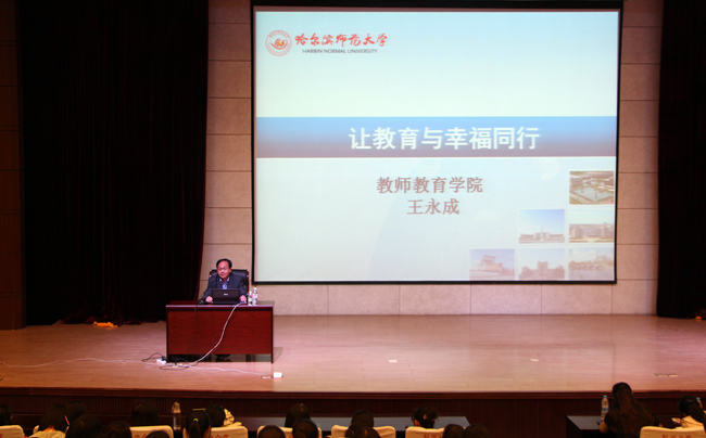 (李贵彬/文)4月29日,教师教育学院在科学会堂举行行知学堂第十一讲,教师教育学院副院长王永成做了题为“让教育与幸福同行——做一名合格的师范毕业生”的主题报告。学院领导、部分教师及学院700余学生参加了报告会。