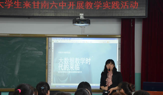我校留澳英语教学专家张晓恬为当地的教师们做了“大数据教学时代的来临”的专题讲座,深入浅出地剖析了初中英语教学现状和改进建议,并着重讲述在大数据时代下,教师如何应对MOOC、翻转课堂、微课等这些最新的课题研究。当地教师代表纷纷感慨时代的进步与教学方法的局限,表示要跟进学术动态,将这些最新的教学方法和理念逐步运用到今后的课堂中。
