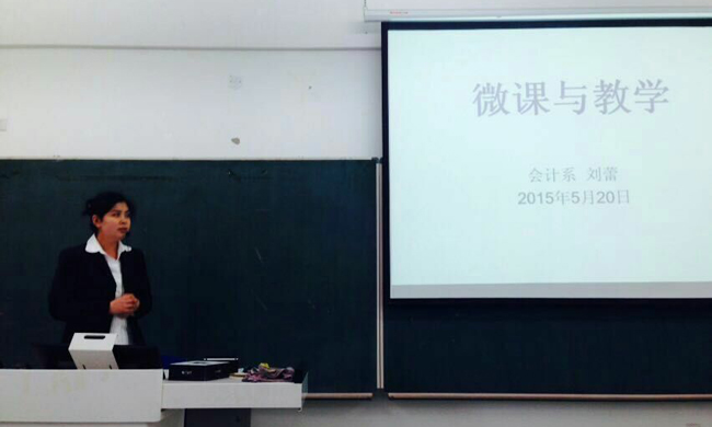讲座由学院青年教师刘蕾博士主讲。刘蕾老师以《微课与教学》为题,从Google的来源入手,围绕着什么是微课,微课是什么样的,微课有何特点,微课对教学有何帮助,如何制作微课等内容,把参加黑龙江省高校微课培训的内容和个人学习体会,向参加讲座的老师们进行了详细的讲解和介绍。刘老师强调了制作微课的教学设计要以学生为中心,满足有效、有趣和有用的原则。刘老师语言生动流畅,表达富有感染力,讲解内容引人入胜,特别是穿插的具有超强视觉震撼力的视频,展示了小小微课能够产生的巨大影响力。本次示范讲座使与会的老师们深受启发,对微课这个新型教学资源有了更深的认识,尤其是刘蕾老师的精彩示范让与会教师大开眼界、耳目一新,不仅拓宽了老师们的视野与思路,提升了信息化教学的能力,而且对如何制作精品微课有了理论和方法上的具体指导。