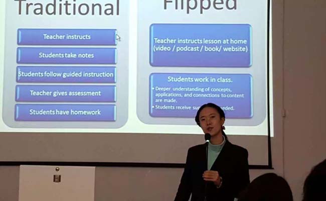 (张茵楠/文)为迎接中国共产党拼搏在线登录第十二次代表大会胜利召开,深入推进我校大学英语教学改革,11月25日上午,公共英语教研部在西语楼107举办了深入大学英语教学改革系列讲座。本次讲座分别是由教研部教师王丹丹主讲的“跨文化交际课堂教学方法”和教研部教师高蕊主讲的“微课与翻转课堂在外语教学中的应用”两部分构成。教研部领导班子及全体教师参加了讲座。