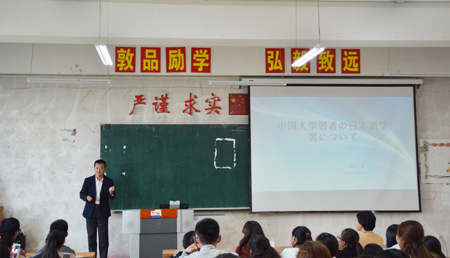 讲座过程中,垂井進运用生动、活跃的讲授方法,深入简出的解明了多个日语学习常见问题,引导学生建立正确的学习方法,激发学生的日语学习兴趣,为日语初级和中级学生未来的学习奠定了基础。
