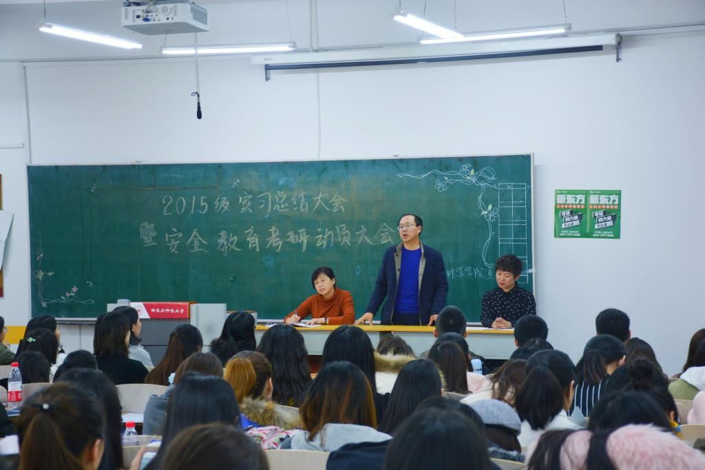 (李春萌/文)11月14、15日下午,教育科学学院在329和429教室分专业召开了教育科学学院2015级实习总结大会暨就业指导考研安全教育大会。学院党委书记辛显文,党委副书记王清艳,副院长刘俊强出席会议。