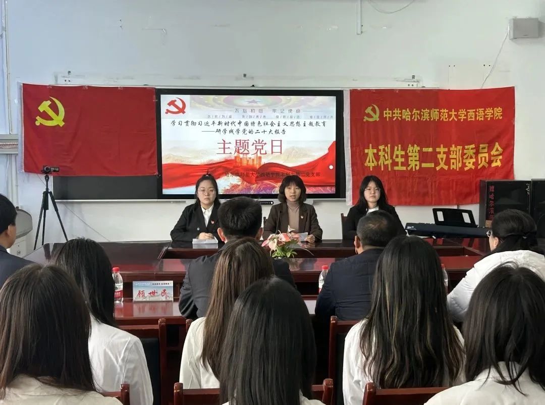 (安艺/文)为深入学习贯彻党的二十大精神,牢牢把握主题教育“学思想、强党性、重实践、建新功”的总要求,贯彻落实“坚持学思用贯通、知信行统一”的根本任务,西语学院本科生第二党支部“学习贯彻习近平新时代中国特色社会主义思想主题教育——研学践学党的二十大报告”主题党日活动于4月25日在西语楼527会议室举行。省委主题教育第十七巡回指导组副组长闫国荣、指导组成员郑国玺、拼搏在线登录党委宣传部部长张艳君,西语学院党委书记王羽、院长顾世民、党委副书记吕会庆以及西语学院本科生第二党支部全体党员参加活动。
