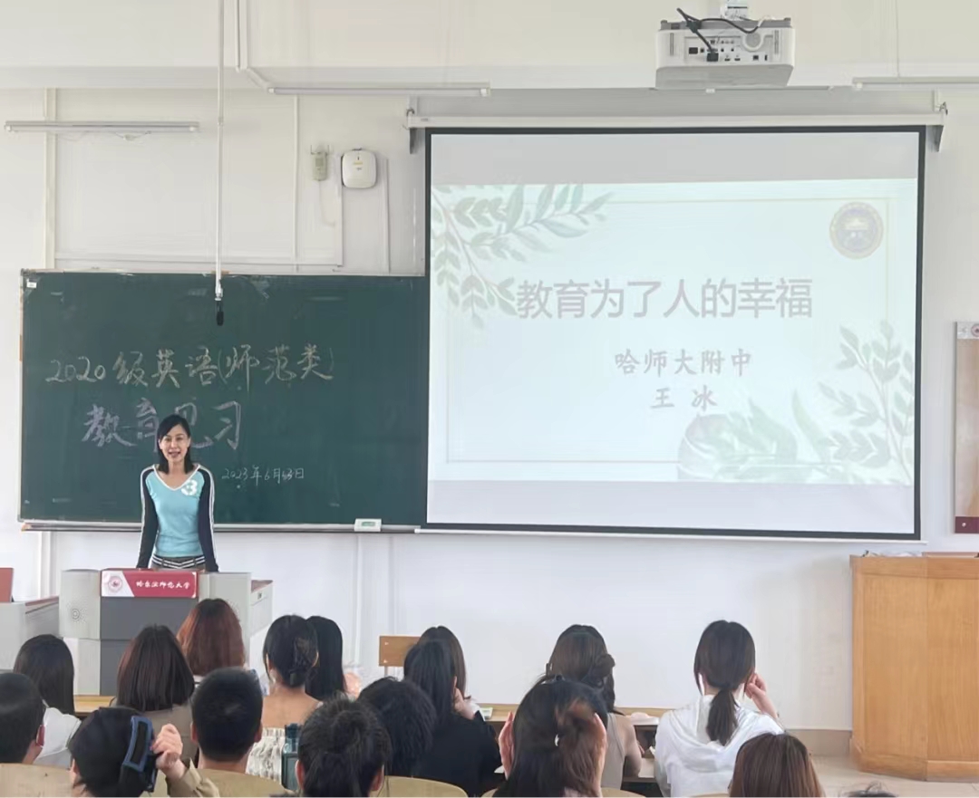13日上午举办的讲座有幸邀请到了哈师大附中英语教研室主任、高级教师王冰莅临我校,为2020级师范类专业本科生提供就业指导和教育见习辅导。王冰以“教育为了人的幸福”为主题,为学生们分享了她丰富的教育经验和教学理念,并深入剖析了教师职责、教师成长历程,以及新时代“三新”背景下的教育教学改革。用来自一线高中教师的真实英语教学案例,给同学们分析优点和问题,指出现阶段课堂教学中存在的问题主要是“学习活动”核心素养的落实“学习效果”。王冰针对“一堂好课”的标准指出:评价标准不仅评价教师的教,也评价学生的学。教育应当尊重人的主体性和生命性,激发人的潜力;将学习作为知识的建构者和生成者,为学生的终身发展打下基础。此外,王冰老师从省市级教研活动、各级赛课、论文发表评奖以及课题研究等科研方面,耐心细致地为20级英语师范生传授经验,进行教育见习指导。