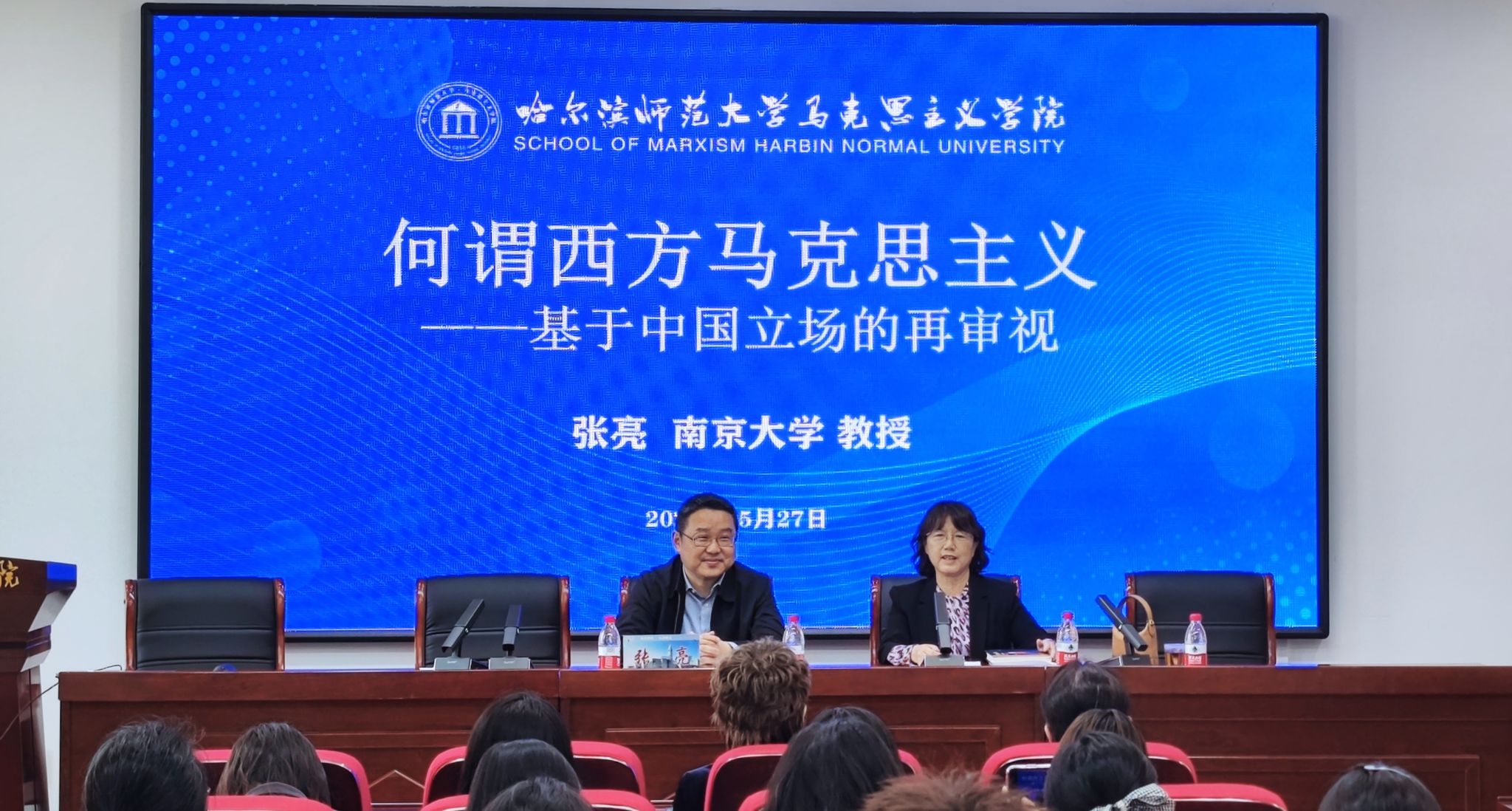 (翟屿潼/文)为深刻领会马克思主义中国化时代化命题,扎实推进国外马克思主义研究工作,深化理解习近平新时代中国特色社会主义思想理论指引,拓宽视野,开阖思维。5月27日下午,马克思主义学院特邀南京大学特聘教授、博士生导师张亮在社科楼505会议室为我院师生作了题为“何谓西方马克思主义——基于中国立场的再审视”学术报告。我校马克思主义学院近100名师生参加此次报告,学校党委副书记李庆霞教授出席并主持报告会。