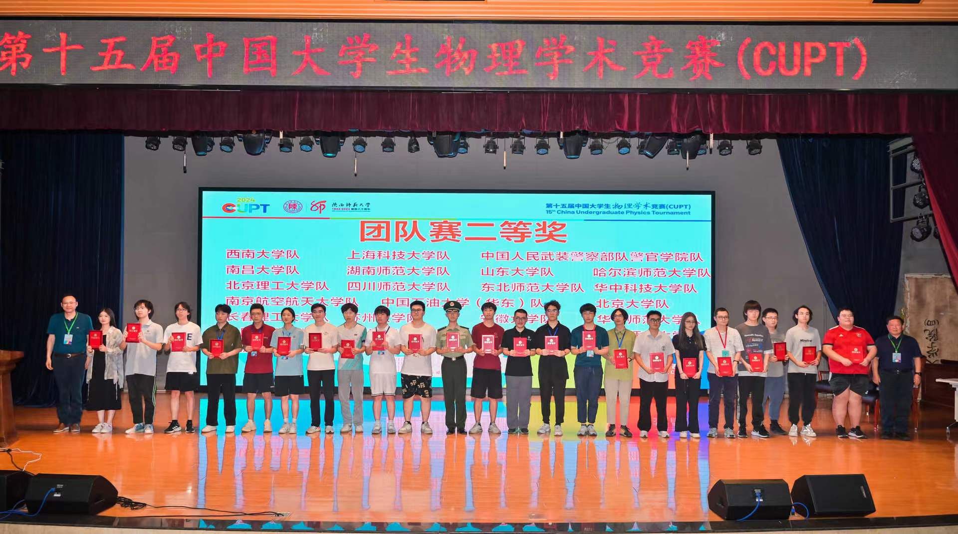 (孟庆国/文)8月18日,第十五届中国大学生物理学术竞赛国赛在西安陕西师范大学举行,来自北京大学、复旦大学、中国科学技术大学等全国67所高校的68支代表队参加全国总决赛。经过五轮对抗赛,我校代表队获得总成绩第24名,荣获国赛二等奖,并获得直通2025年第十六届中国大学生物理学术竞赛国赛资格。