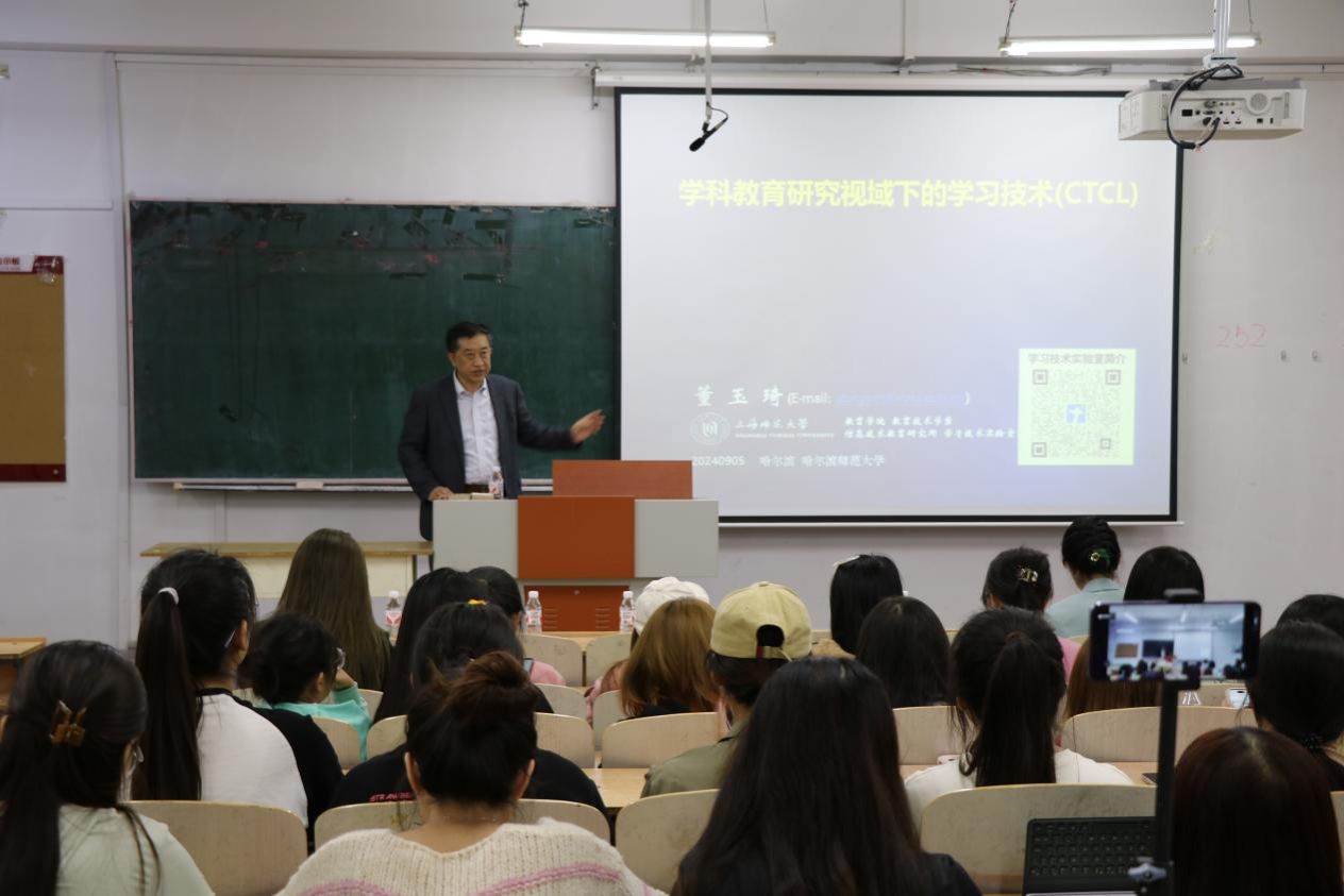 9月5日晚,应教育科学学院邀请,上海师范大学董玉琦教授在社科楼329教室做了题为《学科教育研究视域下的学习技术(CTCL)》的学术讲座。教育技术系师生、小学教育系教师和教师教育学院学科教学专业研究生等80余人听取讲座。讲座由教育技术学专业负责人刘俊强教授主持。