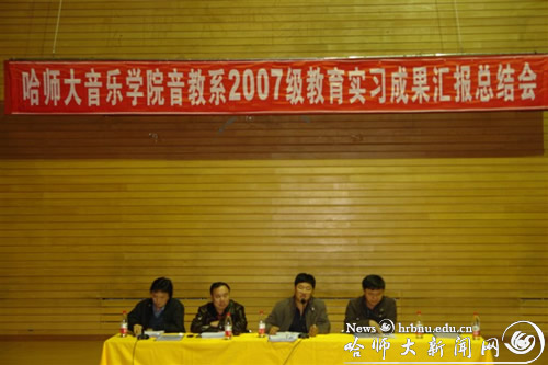 10月13日下午,音乐学院音乐教育系在江南校区音乐厅召开了“哈师大音乐学院音乐教育系2007级教育实习成果汇报总结会”。教务处副处长程荣进及音乐学院副院长张磊、王立和出席大会,全系教师及全体实习生参加了会议。