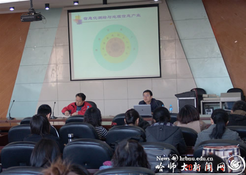 11月4日上午,龙江学者特聘教授冯仲科教授在我校图书馆一楼报告厅做了题为“测绘信息化与地理信息产业前沿”的学术报告,地理科学学院院长万鲁河教授主持讲座。