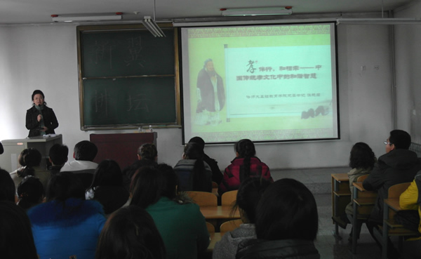 讲座现场座无虚席,同学们均兴致高涨。张艳君将理论与实践完美结合,通过自身经历以及所见所闻为同学们倾情讲述了中国传统文化“孝”的精髓。一段段生动的故事,一句句诙谐幽默的语言深深吸引了在场的同学。互动环节中,学生们积极踊跃地加入讨论,将自己所理解的“孝”阐述了出来,现场气氛活跃,讲座收到了良好的效果。