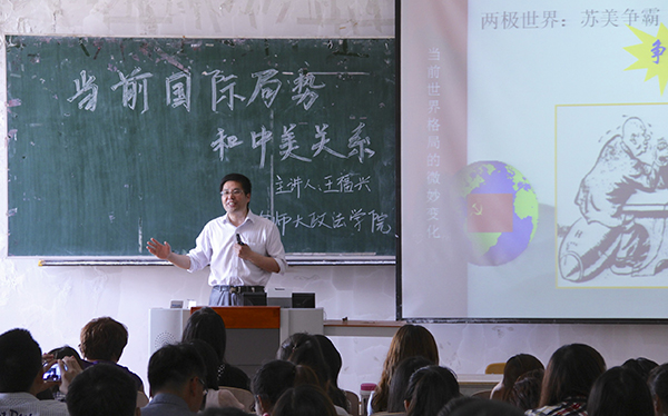王福兴从“当代国际形势发展的主要趋势”、“全球政治觉醒”、“美国重返亚太对中国经济的影响”三个方面为切入点,系统而深刻地为政法学院思想政治教育专业以及教师教育学院思政行知班的学生就当代国际局势和中美关系进行了剖析。