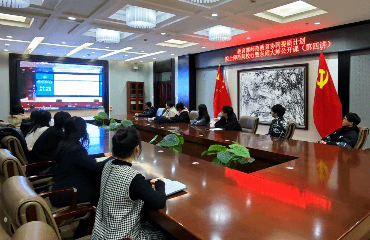 为全面贯彻落实党的二十大精神,教育部师范教育协同提质计划东北师范大学组团院校于近日邀请中国科学院院士、数学家、统计学家陈松蹊,以线上线下相结合的方式,举办“院士师范院校行暨东师大师公开课(第四讲)”活动。我校在行知楼1015会议室设立分会场,教务处相关同志和协同提质计划伊犁师范大学与我校联合培养的本科生集中参会。