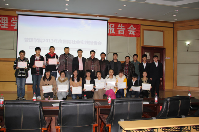 10月16日,管理学院在图书馆三楼报告厅举行了2013年度暑期社会实践报告会。校团委书记徐长勇,管理学院党委书记刘可心,院长赵辰光等领导出席了会议。