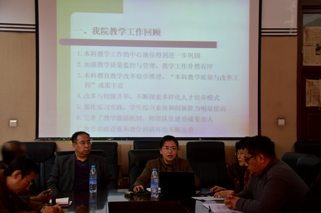 会议由教学副院长金锦善主持。院长王琪就《加强本科教学内涵建设,全面提高教学质量》这一主题作了报告,指出学院教学工作的主要任务并以今年本科人才修订方案为契机,总结回顾了近年来学院教学工作的成绩与不足,对今后如何提高本科人才培养质量进行了部署。