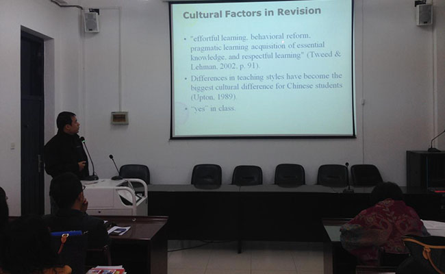 (张茵楠/文)10月28日上午,公共英语教研部在部109会议室举办了归国人员学术讲座。主讲人孙亚超老师于2013年至2015年期间赴美国波尔州立大学攻读硕士学位,主修二语习得与应用语言学。在留学期间同时兼任波尔州立大学本科生英语写作的教学工作,教授课程包括写作与修辞、学术写作等。教研部领导及全体教师参加了讲座。讲座由教研部副主任才亚楠主持。