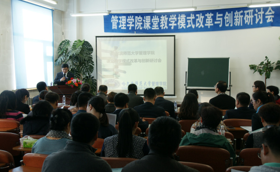 本次会议有开幕式、领导致辞、会议报告三个部分。开幕式结束后,赵辰光发表致辞,指出管理学院课堂教学模式改革的迫切性与必要性,表示出对本次研讨会的深厚期望。会议报告部分由管理学院副院长徐光教授作的题为《The Case Method》的报告,徐光教授从案例教学的定义、特点及必要性等方面进行阐述,指出当前案例教学中的一些问题及在课程运用中的一些挑战,就如何使案例教学在课堂上发挥更大效用与参会教师进行现场讨论,并总结提出诸如严格选取教学案例,推广案例预习法和案例作业法等具体意见。随后,范丽君、牟向阳、于春洁、刘岩芳、祁凯、陶楠、薛宏冰等教师分别结合自己的研究领域对课堂教学模式的改革与创新进行详细阐述,提出相关意见,有利于完善管理学院的教学工作。