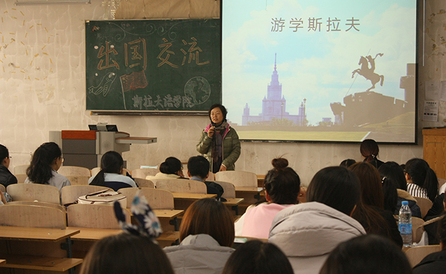 (陈凤/文)11月11日下午,斯拉夫语学院举办了以“游学斯拉夫”为主题的出国交流讲座。此次讲座由学院院长张志军主讲。学院15级辅导员老师及14、15级全体同学参加活动。