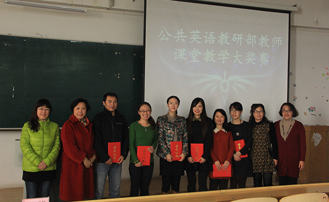 按照教研部“教师课堂教学大奖赛”评分标准,比赛从每位参赛选手的语言、教学基本功、授课内容、课堂设计、课件制作、教学方法等方面进行综合评价。经过激烈角逐,最后评出一等奖1名、二等奖2名、三等奖3名。在比赛过程中,选手们运用了全新的教学理念,将传统的教学方法与“微课”和“翻转课堂”相结合,课件制作新颖、语言规范,教学基本功扎实。教研部党总支书记王淑杰对本次大赛做了总结发言,在对各位参赛教师的辛勤付出表示感谢的同时,希望有更多的教师参与比赛,共享教学盛宴,并肯定了教师们所取得的进步,也提出了新的奋斗目标和更高的业务要求,勉励教师们不断进取、精益求精,以此活动为契机,相互学习、不断实践、不断探索,在大学英语教学改革中寻找自己的一席之地,为提高我校大学英语教学质量做出贡献。