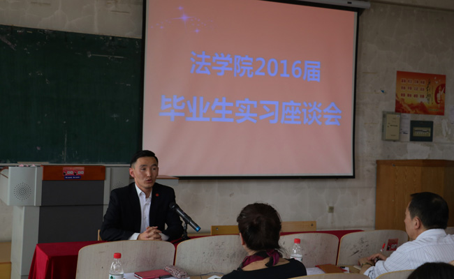 (卢范一妮/文)为交流经验体会,汇报实习情况,法学院2016届毕业生实习座谈会于5月13日下午两点半在社科楼501室举办。法学院党总支书记兼院长苗正达教授,实习带队教师隋晶秋、屈铁军、李秀福,辅导员孙振轩及2016届毕业实习生和各年级学生代表参加座谈。