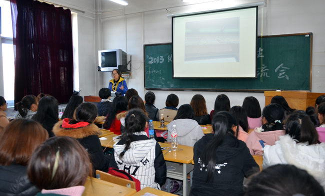会上,2013级法语专业留学生代表从法国南特与南特大学的简介切入,全面汇报了留学期间的学习和生活情况。从留学前各项准备工作的时间安排到递签、面签、各种相关材料的准备及至各部门手续的公证审批;从南特大学的课程设置到留学期间的经历与见闻;从租房、水电网络、交通出行、安全意识到旅行、交友、购物;从对法国本土网站、各种手机应用软件的实际操作运用到及时与国内沟通联系并始终保持通讯畅通;从尊重法国各项法律法规、民族民俗、宗教信仰到人格、国格的自尊自爱、不卑不亢;从专业知识的累积、口语的锻炼提高到中西文化的碰撞、比较、接受与融合;从西方的自由民主到东方的传统传承,留学生们结合自身经历感受与师弟师妹们进行交流分享。留学生们强调指出,国家与民族是留学各国的中国学生最坚强的后盾和安全感,留学生的个人素质与团队意识则是国家与民族精神风貌和国民素质最直接的反映,希望即将留学的同学们一定要谨记人格即国格,自尊自爱、不卑不亢地学习生活。在交流互动问答环节,留学生们细致耐心地解答了现场同学提出的关于留学生活的各种问题。