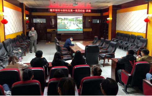 报告中,宋伟教授从世界范围内的城市所面临的气候变化、自然灾害、经济衰退和社会动荡等方面问题入手,深入探讨了目前地理学和城市规划学科热议的“城市韧性”理论课题,并以美国路易维尔市韧性城市建设为例,分享了美国城市政府制定、实施韧性城市的发展战略和过程经验,对中国韧性城市建设提出了建设性展望。会中我校师生与宋伟教授就相关问题展开了热烈讨论,并就相关课题合作研究等交换了意见。