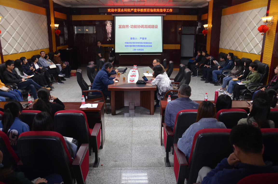 (郝冬梅/文)为加强我校地理科学水资源领域的学术交流与合作,5月21日上午,地理科学学院特邀中国水利水电科学院水资源研究所副所长严登华教授,在我校寒区地理环境监测与地理信息服务重点实验室举办了题为《富自然-功能协调流域建设若干关键问题》的学术报告会,学院部分专业老师和研究生聆听了此次报告。下午严登华教授与学院领导班子成员,系主任、教研室主任及部分专任教师共同开展了寒区生态安全学术交流座谈会,会议由学院院长万鲁河主持。