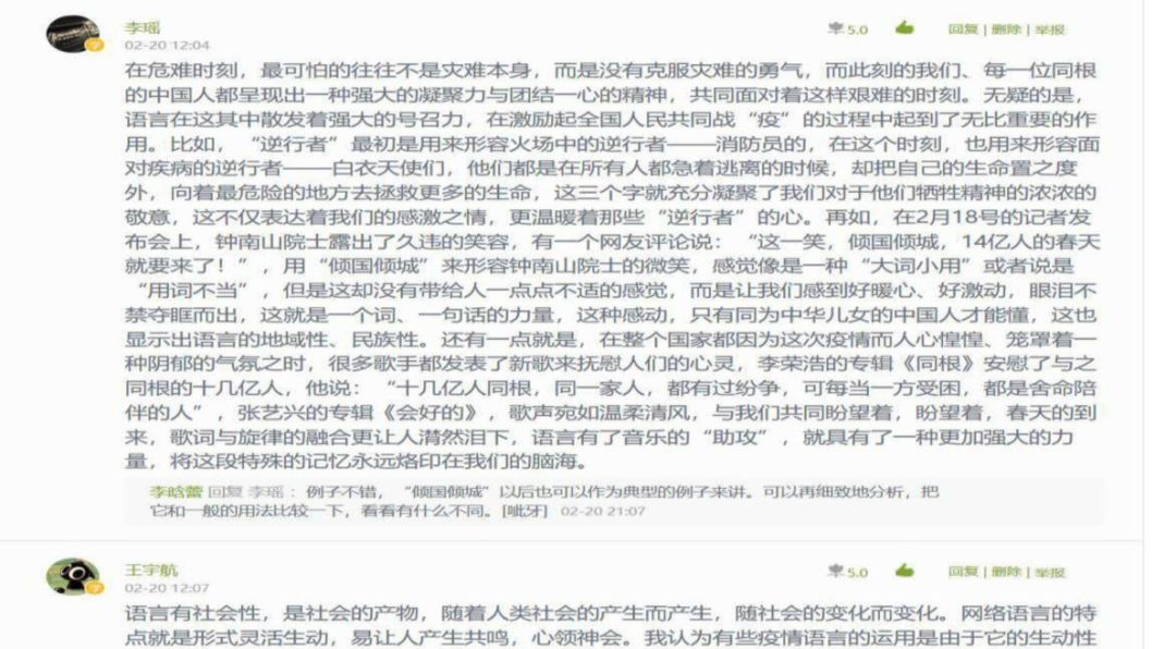 2017级汉语言文学十三班李京泽:“在特殊时期,通过线上教学可以在家中和老师一起学习知识、探讨问题,不懂的地方可以及时得到解答,整堂课新颖有创意。”