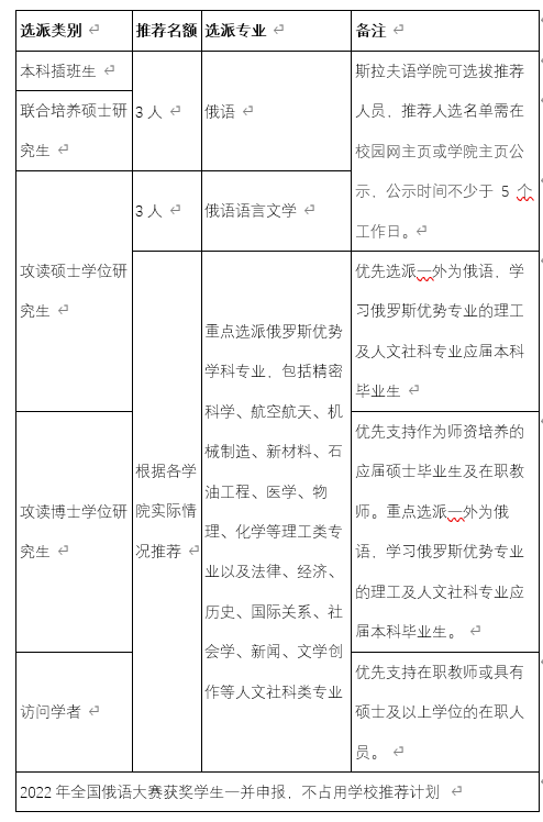根据国家留学基金管理委员会(以下简称国家留基委)《关于2023年中俄政府奖学金的遴选通知》(留金欧【2023】3号),2023年国家留基委继续选派留学人员到俄罗斯高等院校学习、进修或从事科研工作,现将有关事宜通知如下。