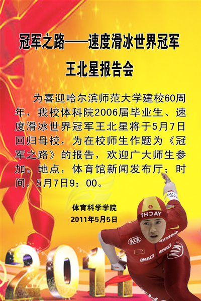 关于举办速度滑冰世界冠军王北星报告会的通知