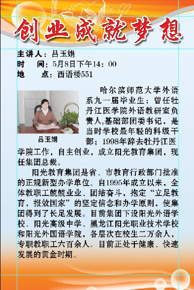 西语学院吕玉娟“创业成就梦想”讲座公告