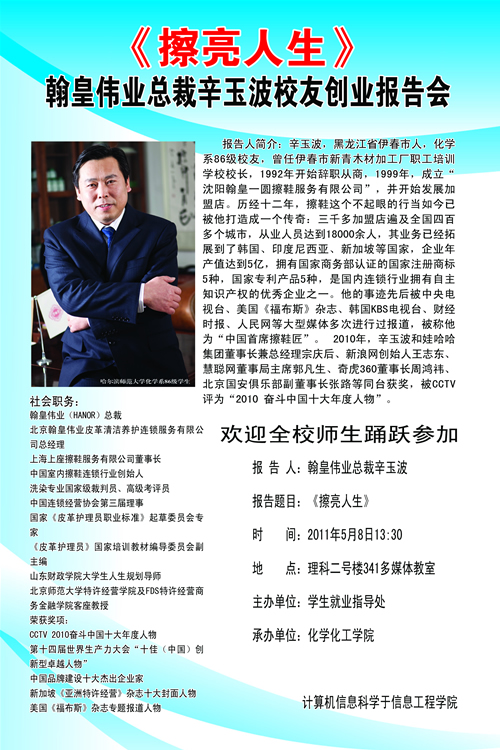 翰皇伟业总裁辛玉波创业报告会海报
