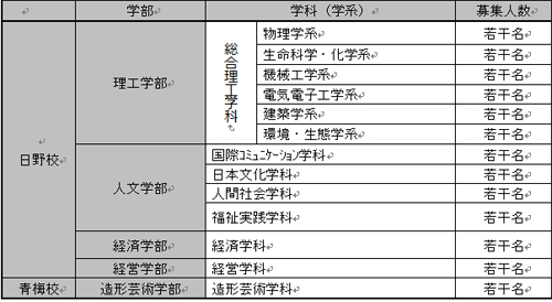 明星大学招收院系、专业: