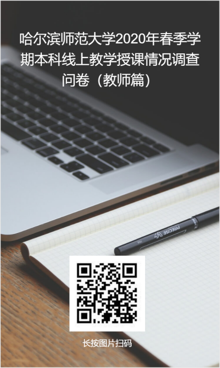 教师问卷请各学院开展线上教学的教师填写,每人只需填写一次。调查数据仅限于研究、解决实际问题使用,我们将对填写的信息保密。您可点击下方的网页链接或扫描二维码完成问卷的填写。如果对这项调查有任何问题或建议,可及时和教务处联系。