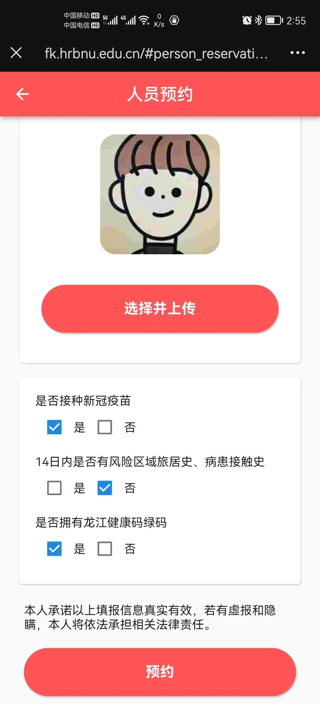 #上传个人头像,并如实填报疫情防控流调信息>>